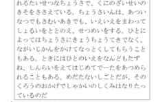 ひらがなで文章が書いてあります。この中から、「あ、い、う、え、お」の5種類のひらがなを探して〇や斜線などの印をつけます