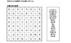 ランダムに並んだ平仮名から、指定の単語を見つけることで、注意力の向上につながります。