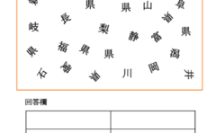 上の枠の中には都道府県の県名がバラバラに並んでいます。この中から、漢字を組み合わせて県名を作りましょう。下の回答欄に書きましょう。
