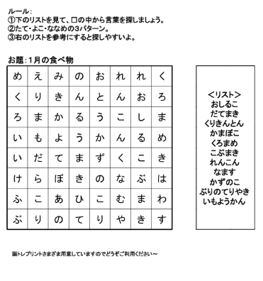 なお、ダウンロードは無料で可能です。ダウンロードしたプリントは、病院や施設にて提供することもかまいません。他サイトや印刷物等、再配布することは禁止しております。 著作権当サイトにあり、放棄しておりません。