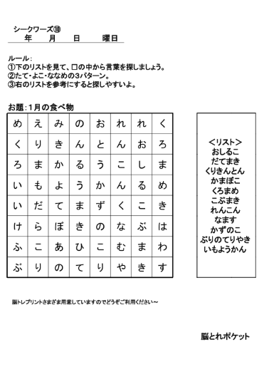 無料脳トレプリント|シークワーズ⑧|簡単・高齢者