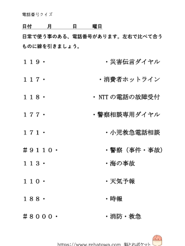 無料脳トレプリント|電話番号クイズ|簡単・高齢者