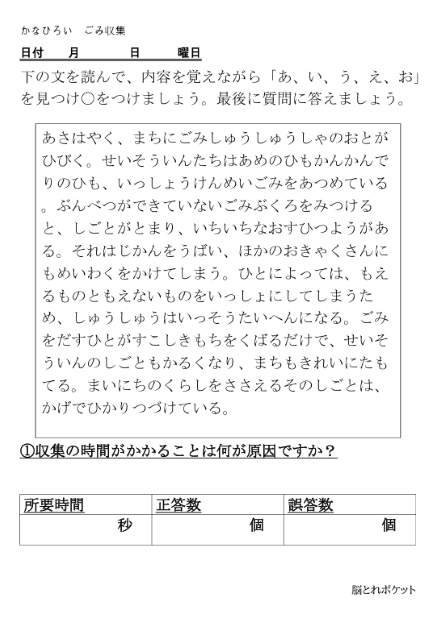 無料脳トレプリント|かなひろい|ごみ収集