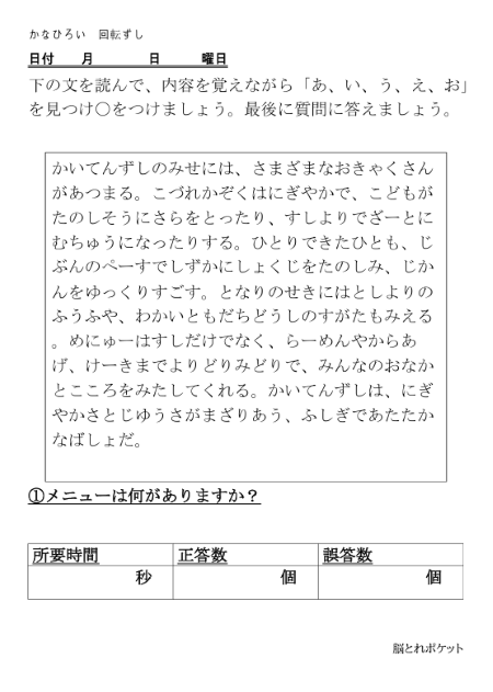 無料脳トレプリント|かなひろい|回転ずし
