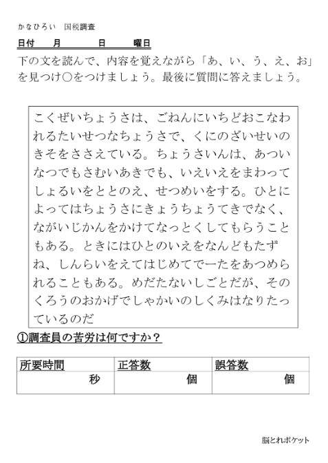 脳トレプリント|かなひろい|国税調査