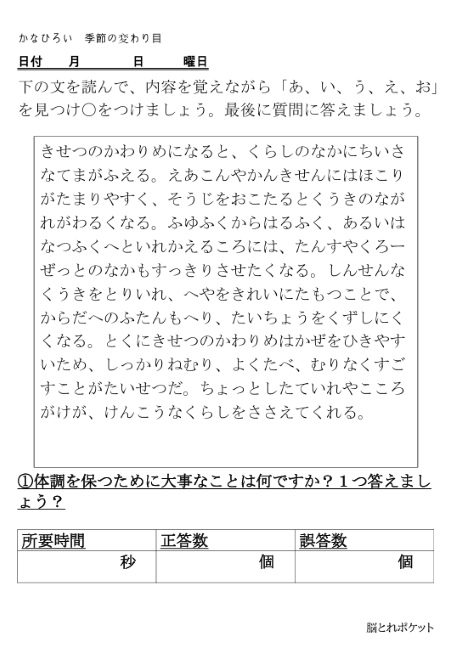 脳トレプリント|かなひろい|季節の変わり目