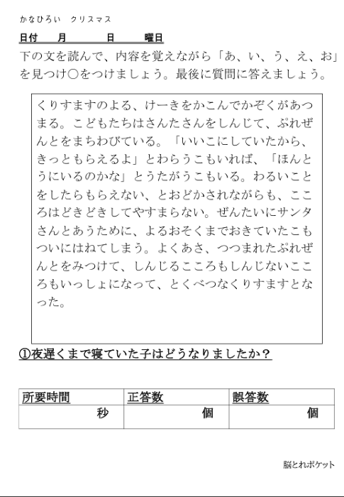 無料脳トレプリント|かなひろい|クリスマス