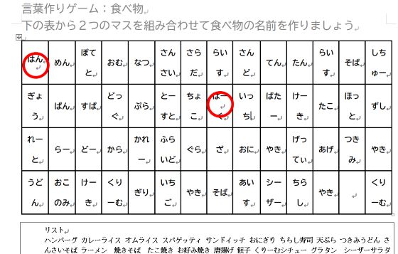 無料脳トレプリント|言葉作りゲーム|食べ物